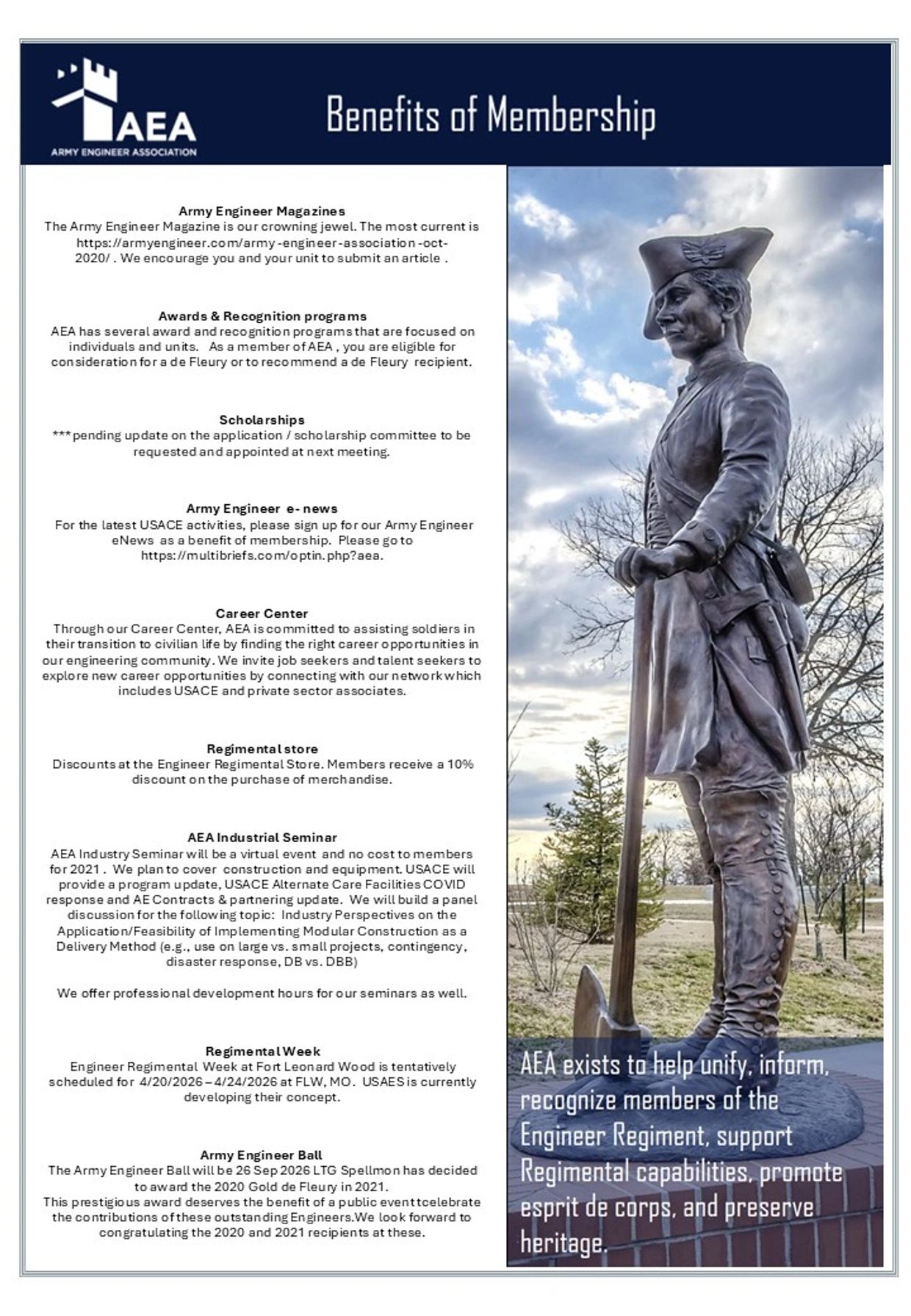 To join the AEA select the link "Join The AEA" below. You will be routed to the Army Engineer Association page to become a member.